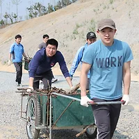 동국제약 OTC 사업본부 임직원들이 국립공원 탐방로에서 안전한 산행을 독려하고 있다.